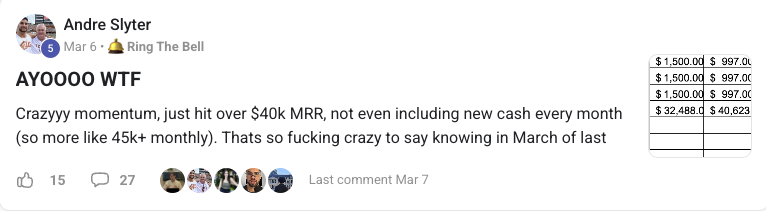 Our community secured over 40 placements last month alone, with starting salaries ranging from $55K to $680K